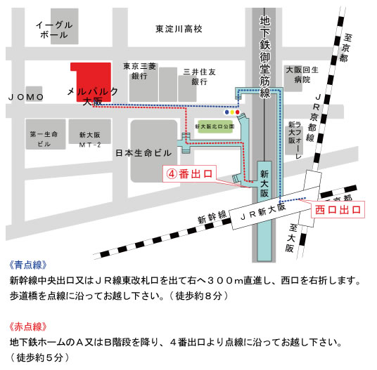 ■地下鉄 御堂筋線新大阪駅4号出口より徒歩3分 JR新大阪駅西口より徒歩7分
