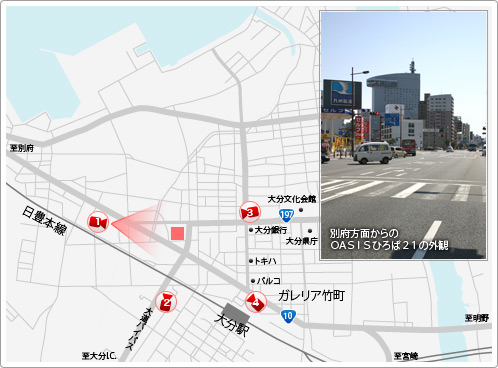■交通アクセス JR大分駅から徒歩約10分 大分交通バス オアシスひろば前停留所 大分バス 末広町停留所
