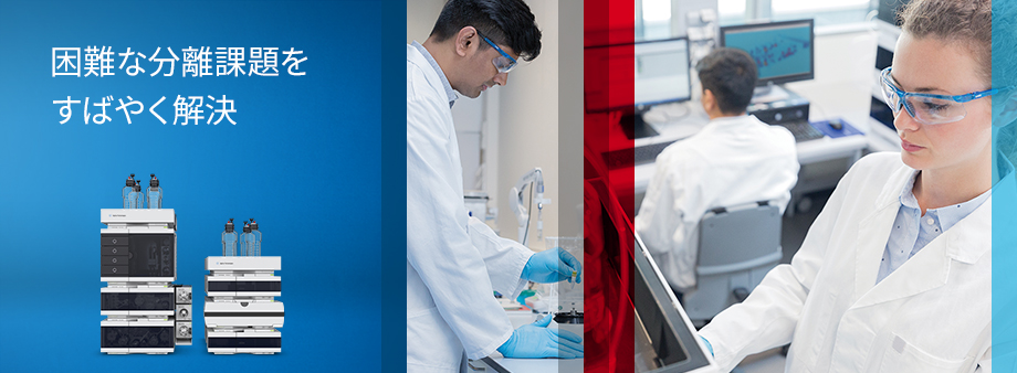 Agilent InfinityLab 2D-LC ソリューションなら、多段階の分画、オフライン分離、サンプル前処理を自動化できます。そのため、きわめて分析困難な分析対象物や複雑なサンプルであっても、的確な判断を下すために必要な分析結果を迅速に得られます。