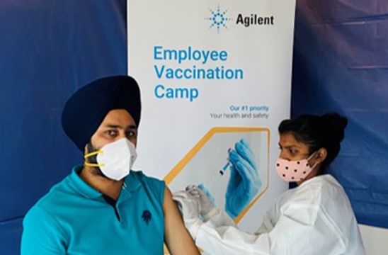 依然として COVID-19 株により身を脅かす新たな流行が生じている中、Agilent India 管理チームは警戒を継続しています。従業員やその家族が次の接種を受けるべき時期に、より多くのワクチン接種の機会を提供するために、インド全域のアジレントオフィスで継続的なキャンプが順次組織されています。