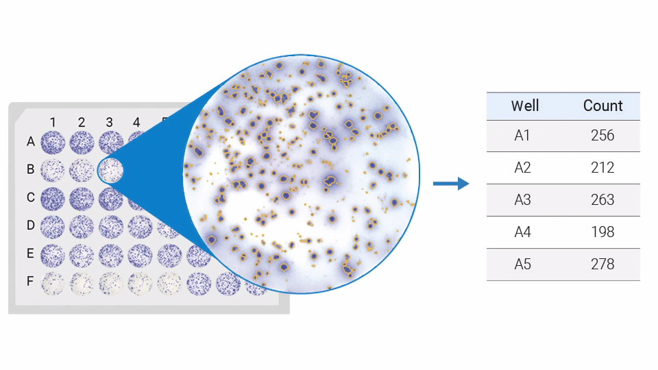 詳しく見る >Agilent BioTek Gen5 ソフトウェアに搭載されているスポットカウントモジュールを使用すると、カウント済みのスポット数やその他の情報を元のプライマリマスクデータに紐づけることができ、画像で最初に特定されたオブジェクトごとにこれらの値を把握することができます。