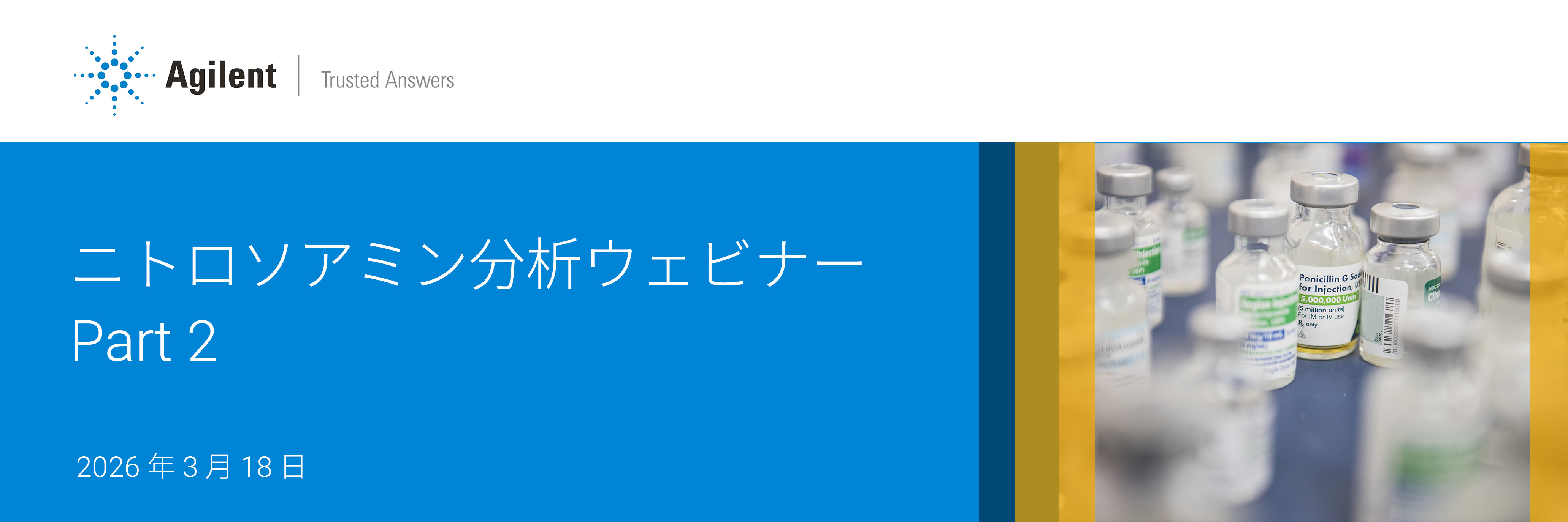 本ウェビナーでは、Agilent 6495D LC/TQ を用いたニトロソアミン分析に関する最新のアプリケーション事例を中心に、製薬業界において重要性が一層高まっているデータインテグリティ対応の要点についても解説いたします。